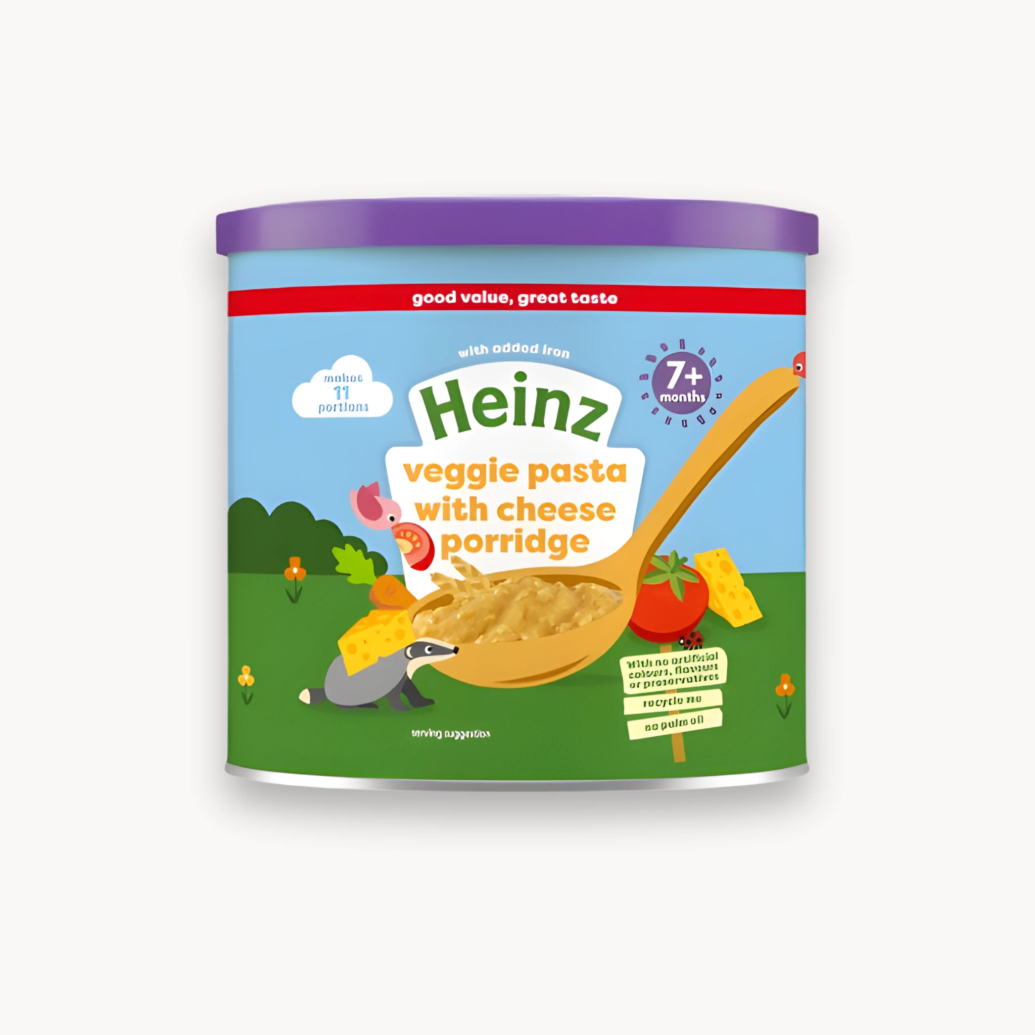 Heinz Veggie Pasta with Cheese Porridge is specially made for babies aged 7 months and above. This tasty and nutritious meal combines pasta, vegetables, and cheese to introduce new flavors and textures during your baby’s weaning journey.