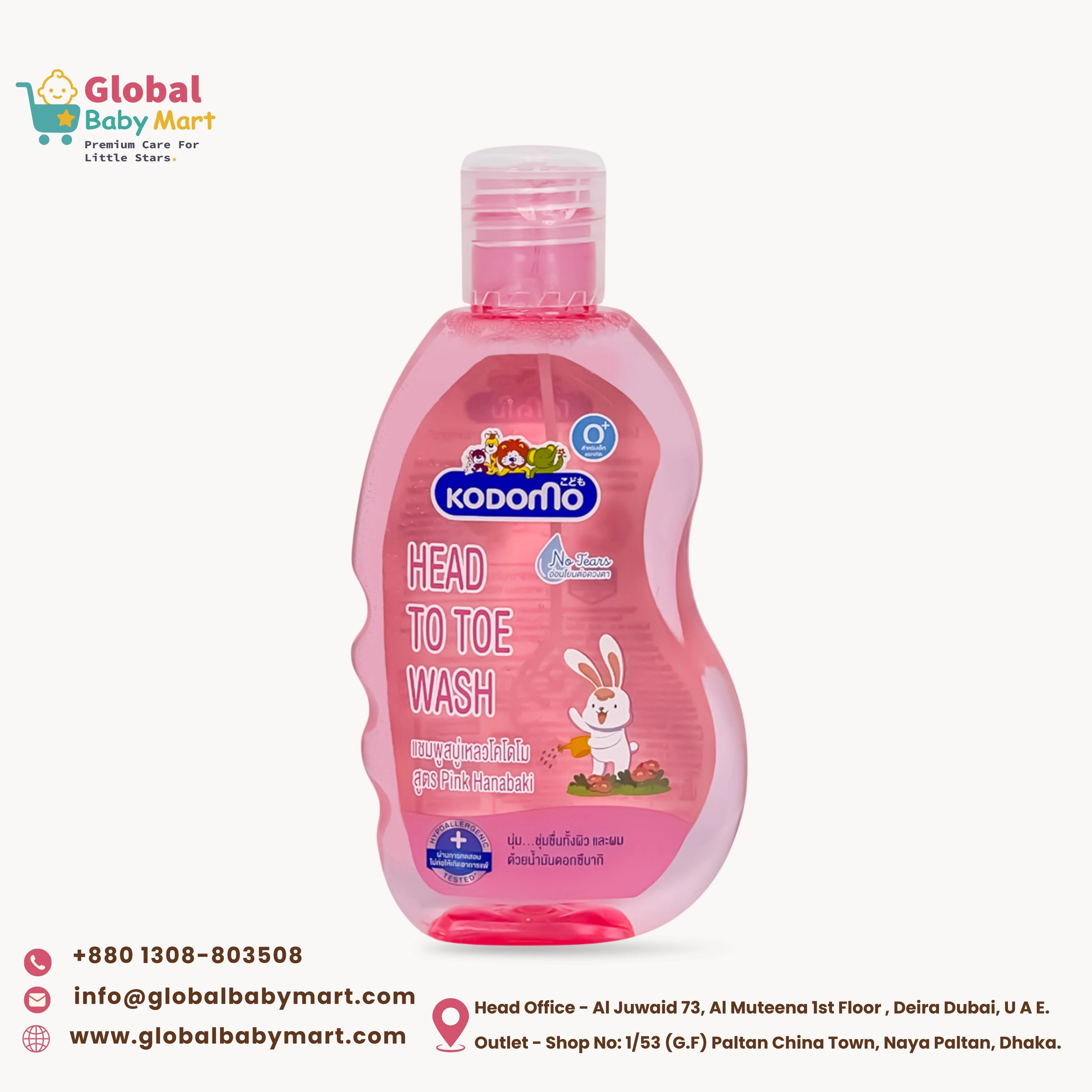 Kodomo Baby Head to Toe Wash Pink Hanabaki is a gentle and mild cleanser specially designed for babies' delicate skin and hair. Its tear-free formula allows parents to safely wash their baby's hair and body at the same time without causing irritation to the eyes. The mild ingredients help maintain the natural moisture balance of the baby's skin while leaving a soft floral fragrance. Dermatologically tested and hypoallergenic, this baby wash is suitable for daily use and provides a safe and soothing bathing experience for newborns and toddlers.