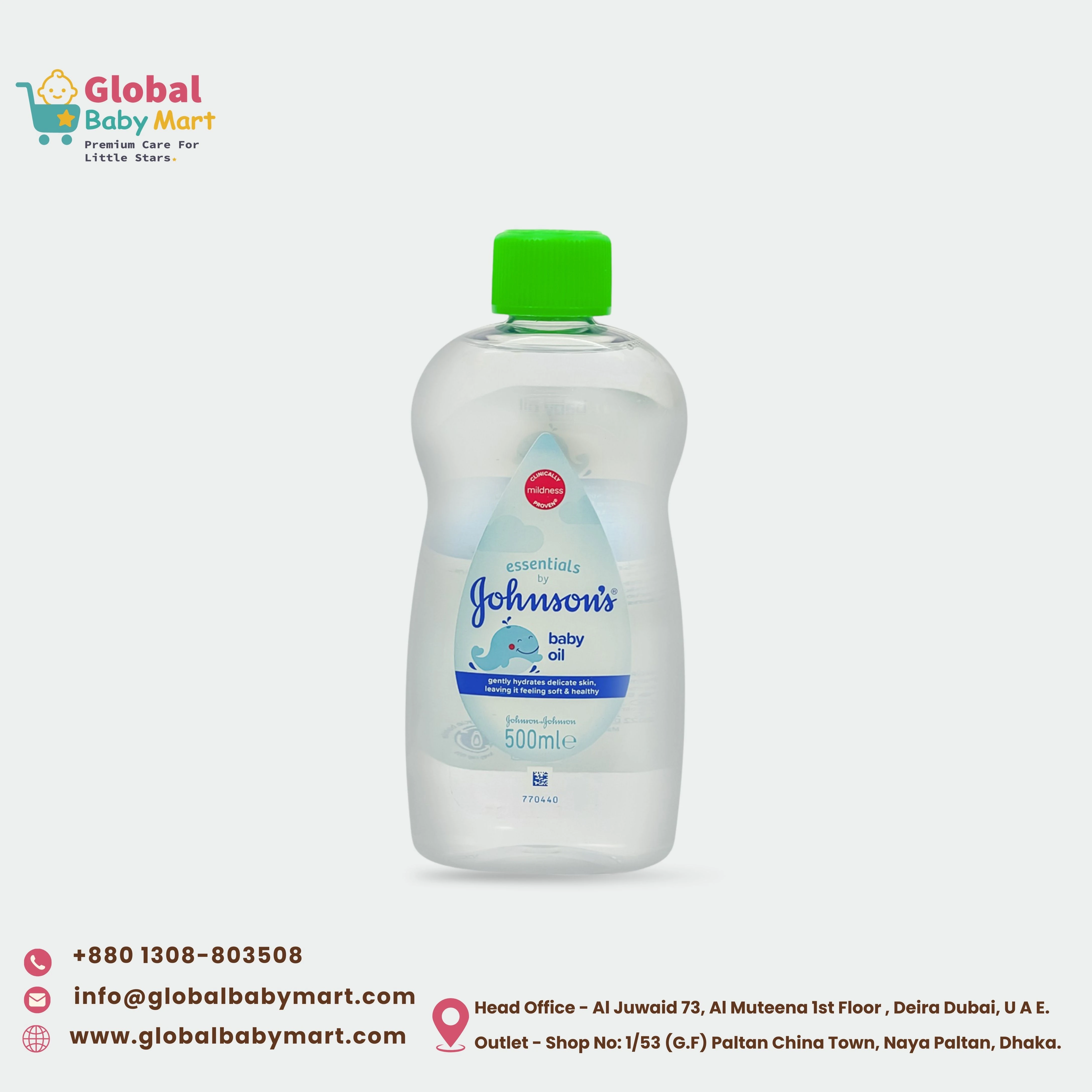 Johnson’s Baby Oil Essentials 500ml is specially formulated to protect and moisturize delicate baby skin. This gentle baby oil locks in up to 10 times more moisture on wet skin, helping keep your baby’s skin soft, smooth, and healthy. Its light, non-greasy formula spreads easily and is ideal for baby massage after bath time.