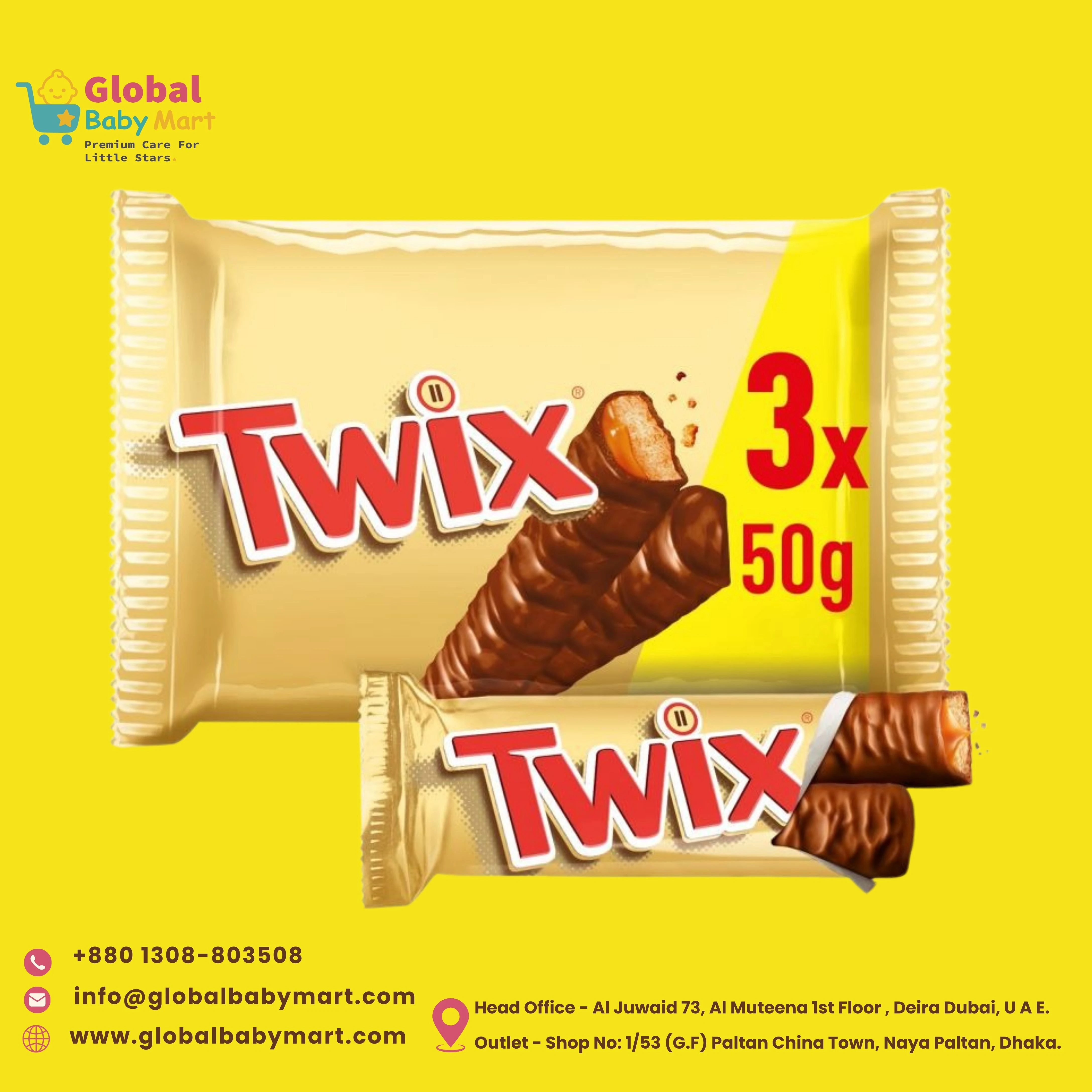 Twix Chocolate Bar Multipack (3 x 50g) brings you the perfect combination of crunchy biscuit, smooth caramel, and creamy milk chocolate. Each pack contains three individually wrapped 50g bars, making it ideal for sharing, snacking, or keeping on hand for a quick treat.